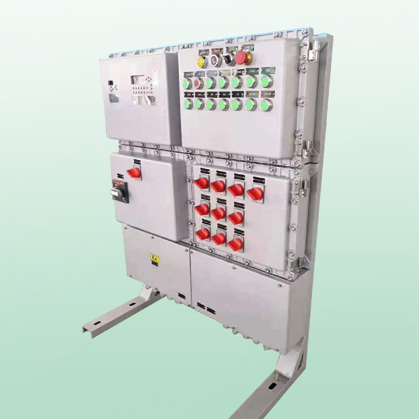 2.外殼采用鑄鋁合金壓鑄成型,表面噴塑。主腔采用隔爆型結(jié)構(gòu),接線腔增安型結(jié)構(gòu)。內(nèi)可選配裝斷路器、交流接觸器、熱繼電器、變壓器、熔斷器、Ex防爆控制按鈕、信號(hào)燈、轉(zhuǎn)換開(kāi)關(guān)等。配電箱采用模塊化設(shè)計(jì),各種回路可以自由組合,電器元件選型可由用戶而定,其結(jié)構(gòu)緊湊、外形美觀。進(jìn)出線采用鋼管或電纜布線均可,進(jìn)出線口方向可由用戶要求而定。