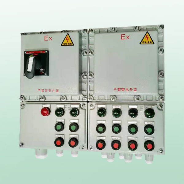 2.外殼采用鑄鋁合金壓鑄成型,表面噴塑。主腔采用隔爆型結構,接線腔增安型結構。內可選配裝斷路器、交流接觸器、熱繼電器、變壓器、熔斷器、Ex防爆控制按鈕、信號燈、轉換開關等。配電箱采用模塊化設計,各種回路可以自由組合,電器元件選型可由用戶而定,其結構緊湊、外形美觀。進出線采用鋼管或電纜布線均可,進出線口方向可由用戶要求而定。